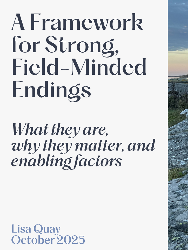 This document addresses why endings are vital to the social sector and why they are too often neglected. It describes strong, field-minded endings and why they are important. It concludes with an overview of internal, external, and system-level enablers of such endings, and some immediate first steps we can all take to promote them.